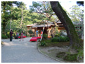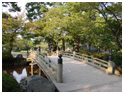 | 「兼六園」は日本三名園のひとつである(他に水戸の偕楽園、岡山の後楽園がある)。入館時に頂いたパンフレットによれば、兼六園は江戸時代における林泉回遊式大庭園らしい。庭園の歴史も非常に長く、1676年に加賀藩の5代藩主の前田綱紀氏が城周辺を整備した際に作庭したのが始まりだ。1822年に12代藩主 前田斉広氏の隠居所が完成した際、「兼六園」という名が付けられた。(15.Oct.2002撮影 01.May.2004公開) |