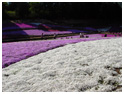 | 羊山公園の芝桜の丘といえば、秩父のシンボル的な存在である武甲山をバックに広がるなだらかな丘に白やピンク、紅色や紫色等の芝桜が植えられた、まさしく芝桜のパッチワーク絨毯である。広さは2004年現在で、約11,700平方メートル、株数もなんと24万5000株にもおよぶという。4月から徐々に咲き始め、4月下旬を中心に満開となり、ゴールデンウィークあたりまで見ることが出来る、花スポットである。 これは実際に訪問して初めて分かったことなのだが、朝に訪問すると、丘の一部が山の影となってしまうがために陽が当たらない部分があり、被写体としては少々残念な結果となってしまったことか。(25.Apr.2004撮影 03.May.2004公開) |